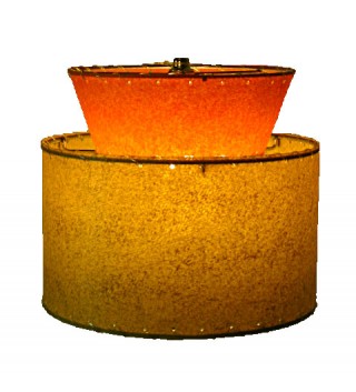 The color of the main tier is deep butterscotch. The color of the top tier is orange. This dramatic color combination can be incorporated into any of our tiered lampshades and retro pendant light fixtures.